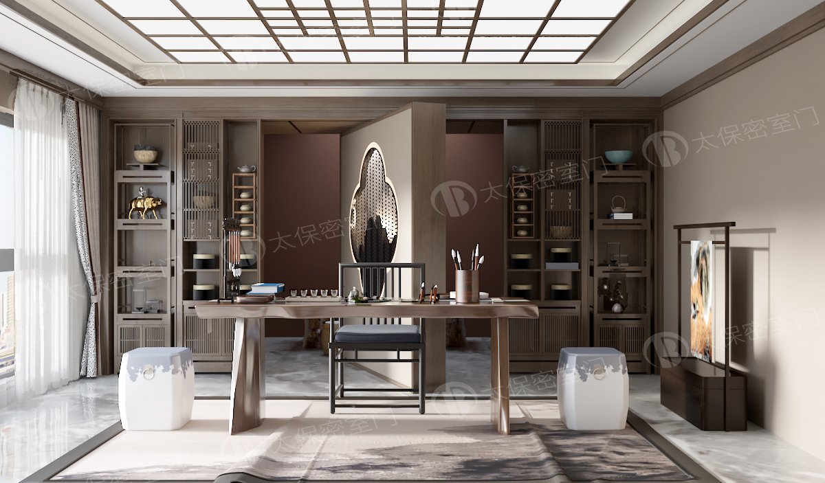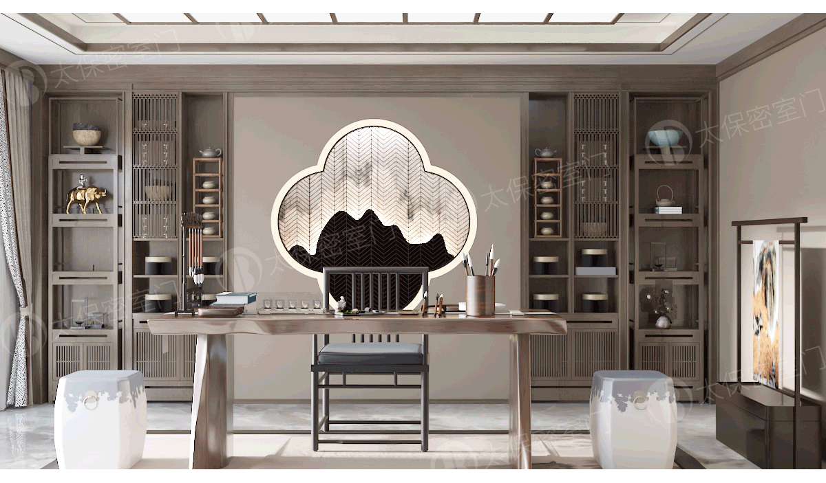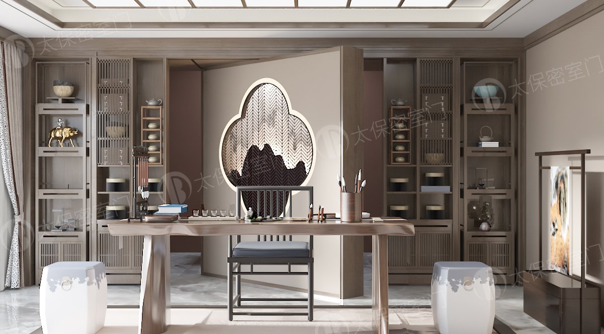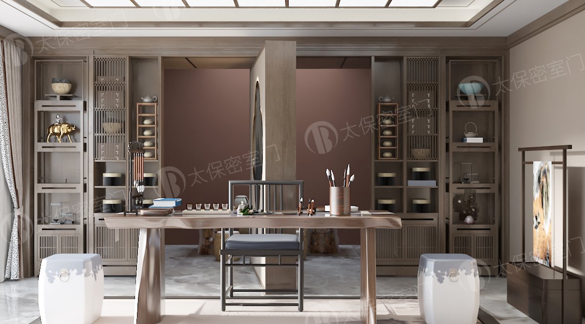 密室门隐形茶室功能性: 一是内部结构采用全钢材料,具有一定安全等级。 无线摇控密码,人脸,虹膜等开启方式。 正常使用的家具也是一道秘密开启的安全通道门。